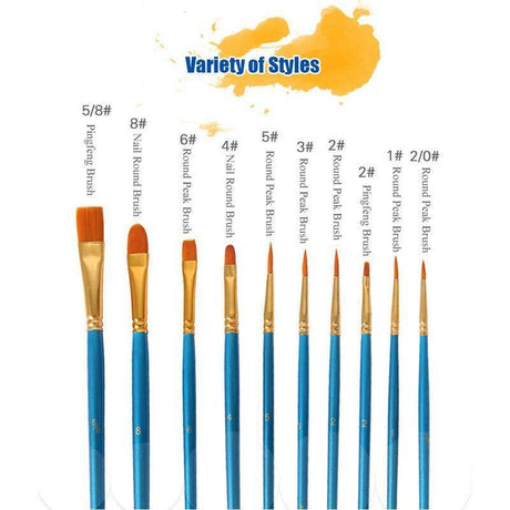 10pcs Artist Paint Brush Set Acrylic Oil Watercolour Gouache Painting Supplies - Blue