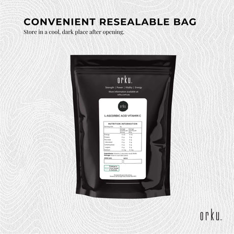 Orku 1Kg Vitamin C Powder Pure L-Ascorbic Acid - USP Grade Non-GMO