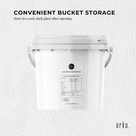 Orku 5Kg Vitamin C Powder in Tub Pure L-Ascorbic Acid - USP Grade Non-GMO