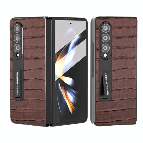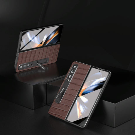 For Samsung Galaxy Z Fold4 5G Premium Leather Phone Case With Holder - Luxury Design - Coffee