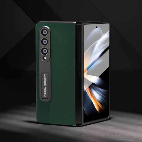 For Samsung Galaxy Z Fold4 5G Premium Leather Phone Case With Holder - Luxury Design - Night Green