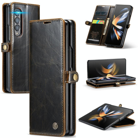 For Samsung Galaxy Z Fold4 5G Premium Hinged Folding Case - Coffee