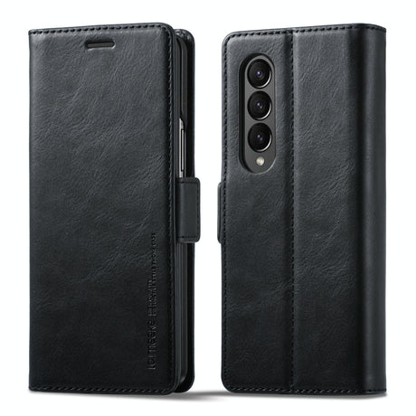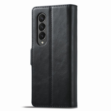 For Samsung Galaxy Z Fold4 5G Premium Leather Phone Case With Holder - Luxury Design - Black