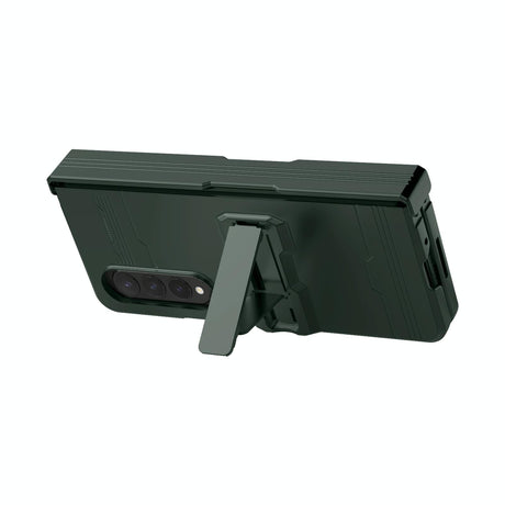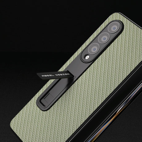 For Samsung Galaxy Z Fold4 5G Carbon Fiber Phone Case With Holder - Green