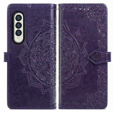 For Samsung Galaxy Z Fold4 5G Embossed Mandala Leather Phone Case - Purple