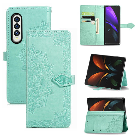 For Samsung Galaxy Z Fold4 5G Embossed Mandala Leather Phone Case - Green
