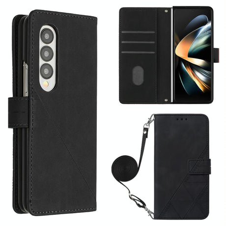 For Samsung Galaxy z Fold4 5G Embossed Leather Flip Crossbody Phone Case - 3d Design - Black