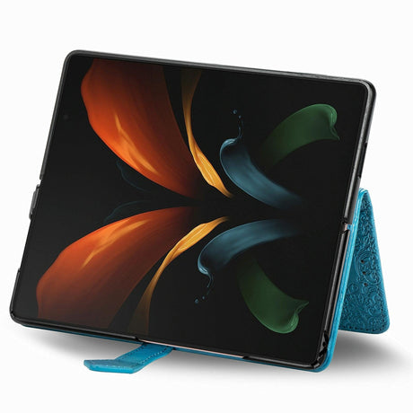 For Samsung Galaxy Z Fold4 5G Embossed Pu Leather Phone Case - Blue