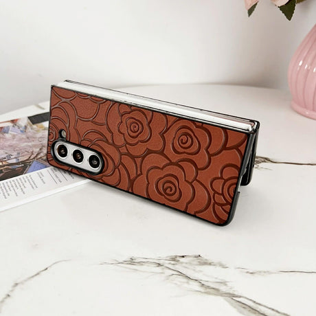 For Samsung Galaxy Z Fold4 5G Embossed Pu Leather Phone Case - Brown