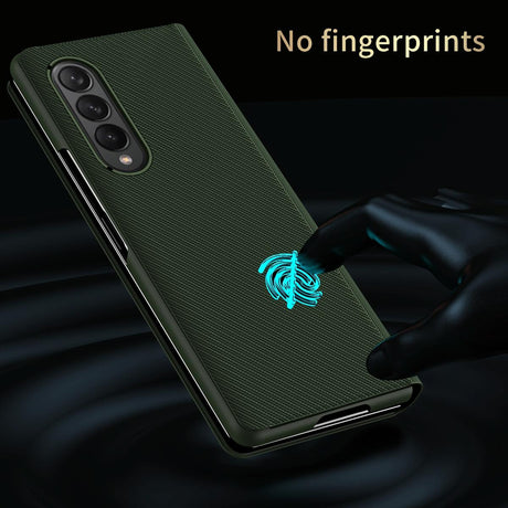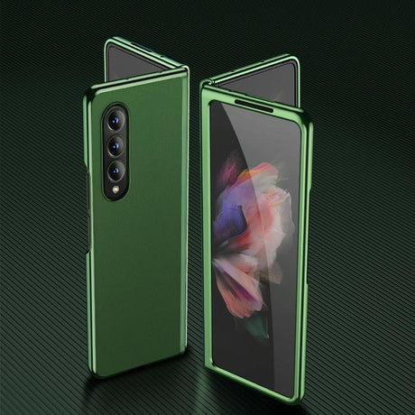 For Samsung Galaxy Z Fold4 5G Leather Folding Phone Case - Electroplated Finish - Army Green