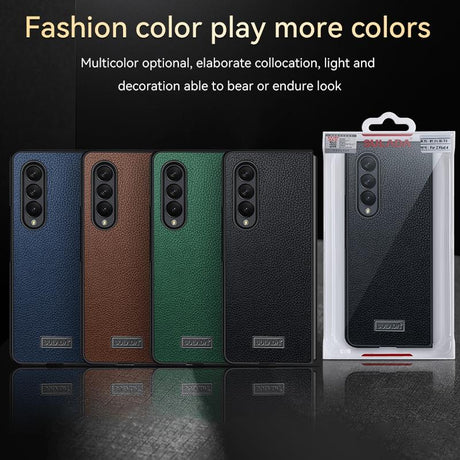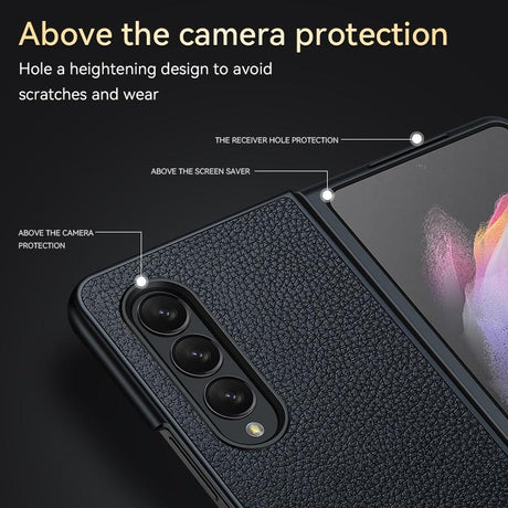 For Samsung Galaxy Z Fold4 5G Handmade Leather Shockproof Tpu Case - Black