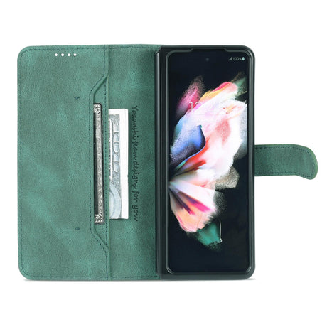 For Samsung Galaxy Z Fold4 5G Leather Magnetic Phone Case - Calf Texture - Dark Green