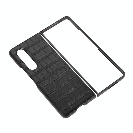 For Samsung Galaxy Z Fold4 5G Genuine Leather Nano Plating Phone Case - Black