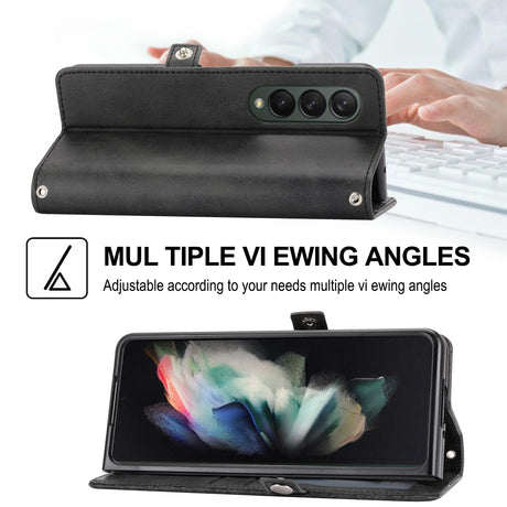 For Samsung Galaxy Z Fold4 5G Leather Dual Buckle Phone Case - Black