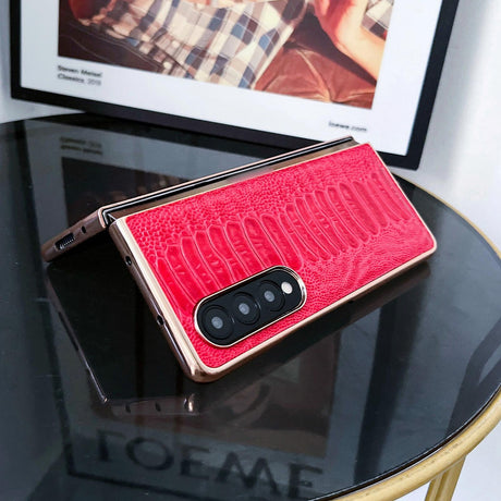 For Samsung Galaxy Z Fold4 5G Genuine Leather Nano Plating Phone Case - Red