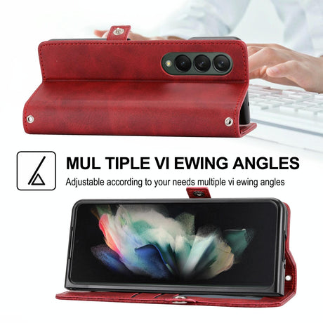 For Samsung Galaxy Z Fold4 5G Leather Dual Buckle Phone Case - Red