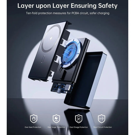 CHOETECH B735-BK 10000mAh 20W MagLeap Wireless Power Bank Black with Phone Holder and Build-in Cable