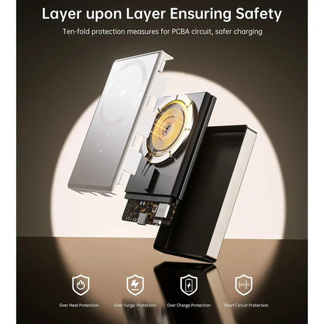 CHOETECH B695-BK 10000mAh 22.5W USB-A + USB-C x 2 + MagLeap Wireless Charge Power Bank Black