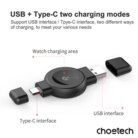 CHOETECH T606-F USB-A +USB-C Magnetic Charger for Samsung & Apple Watch