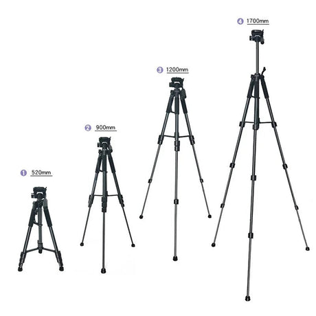 1.7m Lightweight Aluminum Alloy Camera Tripod with 3-Way Pan Head and Carrying Bag