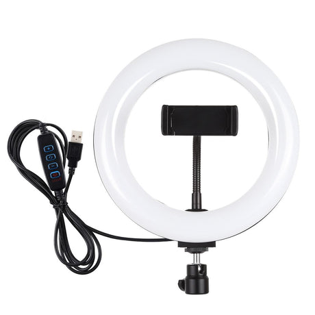 20cm Usb Dual Colour Led Ring Light with Phone Clamp - Black