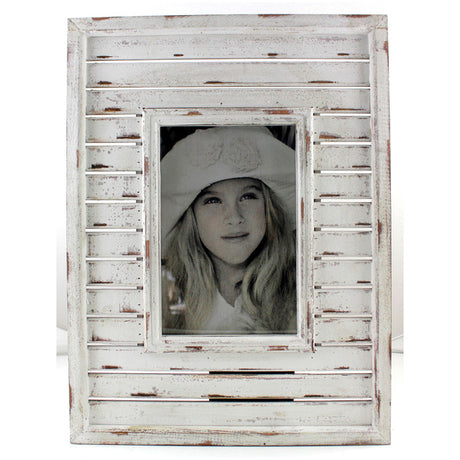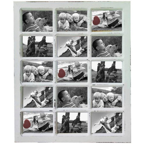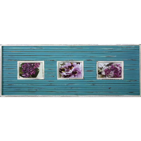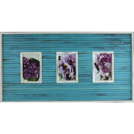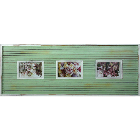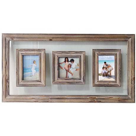 Rustic White 3 Opening Photo Frame w Glass Background 75cm