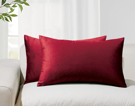 Twin-Pack Velvet Cushion Covers - Soft Microfibre Cushion Covers with Hidden Zipper (Red, 30cm*50cm)