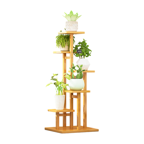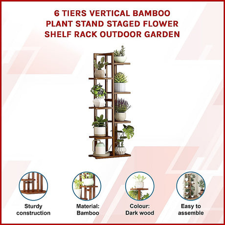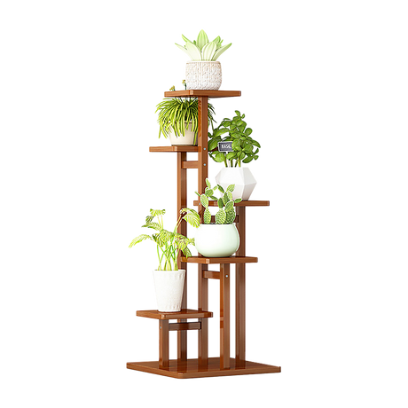 6 Tiers Vertical Bamboo Plant Stand Staged Flower Shelf Rack Outdoor Garden