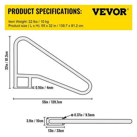 VEVOR Pool Handrail 2 PCS 30x30in Stainless Steel with Base Plate for Spas