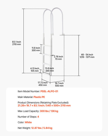 VEVOR Thickened 4-Step Pool Ladder of Double Handrails for 1219.2-1371.6mm Pool