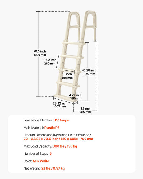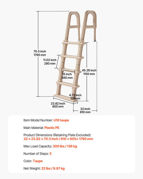 VEVOR 5-Step Inclined Robust Pool Ladder of 2 Handrails for 1219.2-1371.6mm Pool