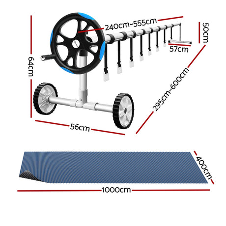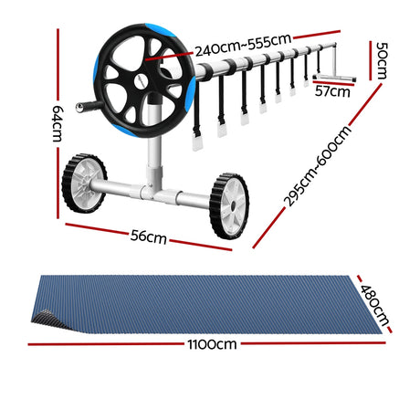 Aqua Buddy Pool Cover 600 Micron 9.5x5m w/ Blue Roller 5.55m Black Solar Blanket