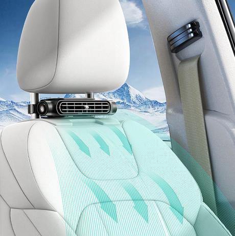 White Car Seat Headrest Fan - USB Powered Bladeless Rear Seat Fan for Vehicle Cooling (175x75x34mm)