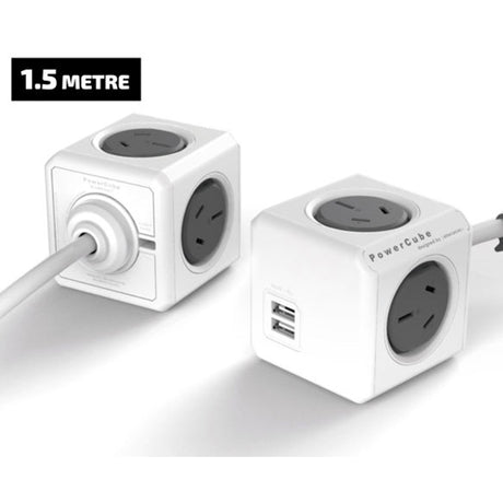 Allocacoc PowerCube Extended USB Power Hub with 4 Outlets and 2 USB Ports - Grey-White, 1.5m Cable