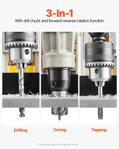 Magnetic Drill 1200W 2810 lbf Mag Drill Press 1.6 in Boring Diameter Yellow