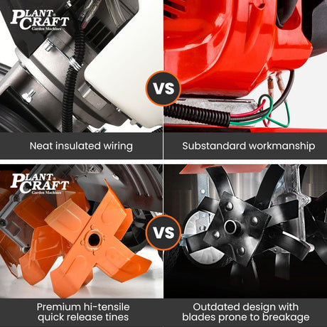 PLANTCRAFT 46CC Garden Cultivator Tiller Handheld 15 Inch Petrol 4-Stroke Titan 9