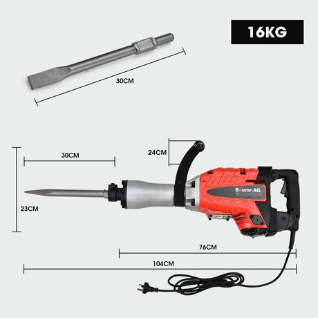 Baumr-AG 2400W Pro-Grade Electric Demolition Jackhammer, with 3 Bonus Chisels, Carry Case