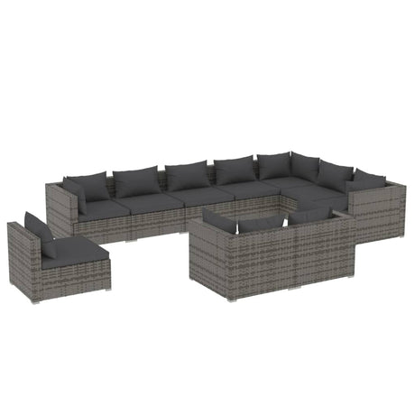 10 Piece Garden Lounge Set with Cushions Poly Rattan Grey