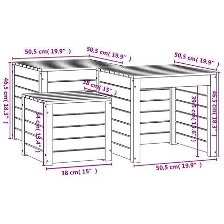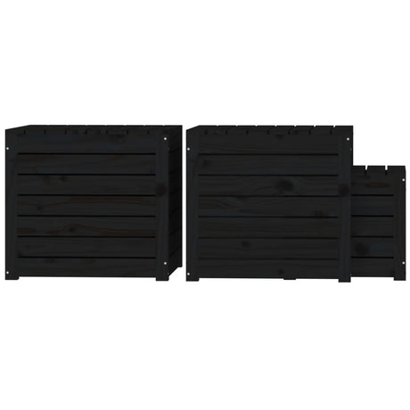 3 Piece Garden Box Set Grey Solid Wood Pine