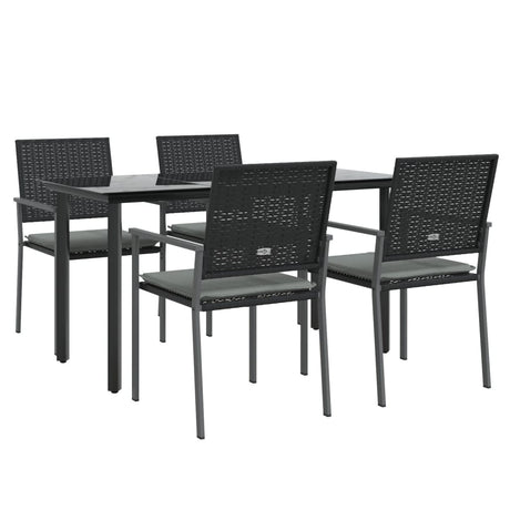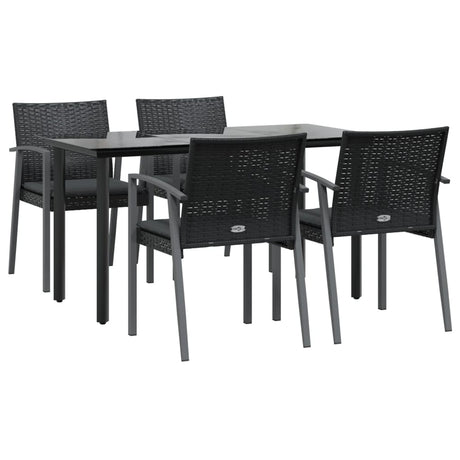 5 Piece Garden Dining Set with Cushions Poly Rattan and Black