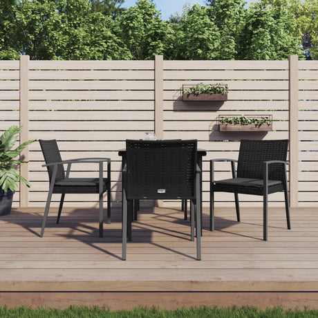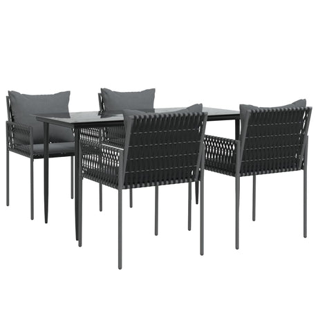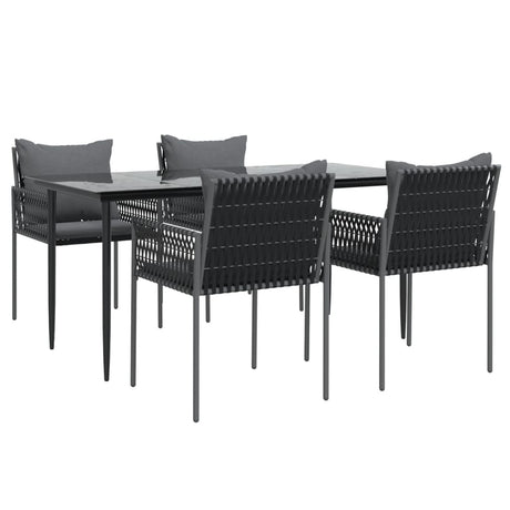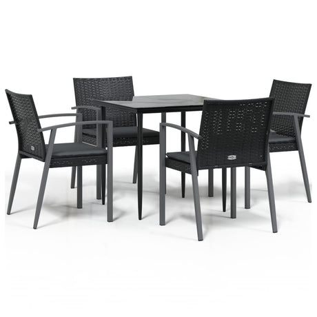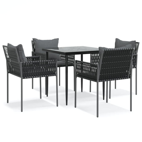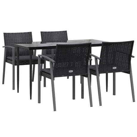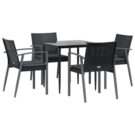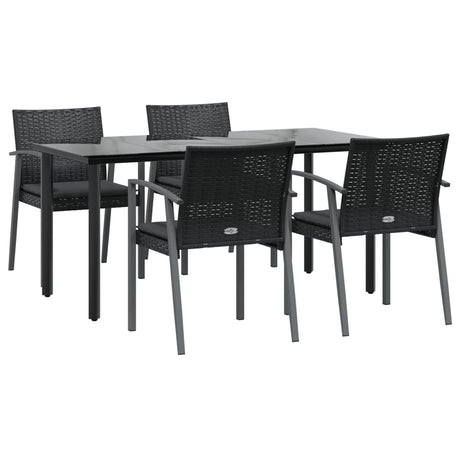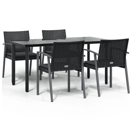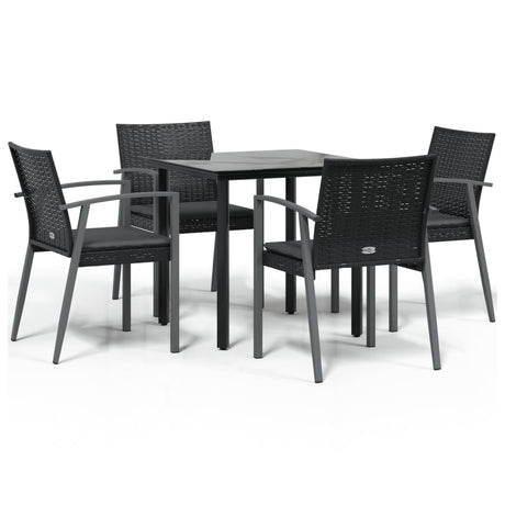 5 Piece Garden Dining Set with Cushions Poly Rattan Black