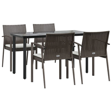 5 Piece Garden Dining Set with Cushions Poly Rattan Brown