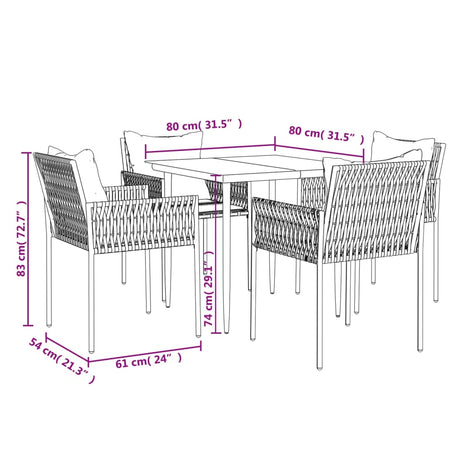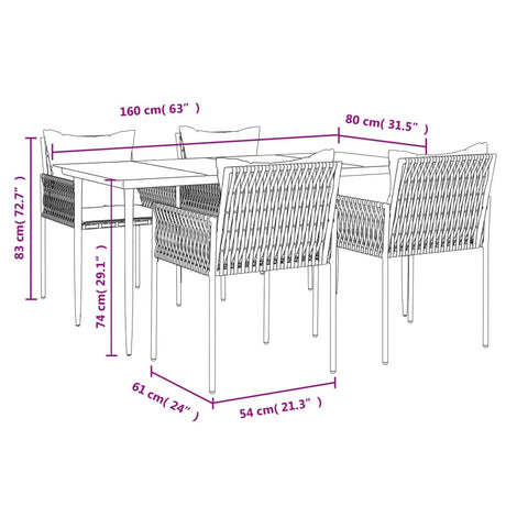 5 Piece Garden Dining Set with Cushions Poly Rattan and Steel