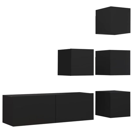 5 Piece TV Cabinet Set Grey Engineered Wood