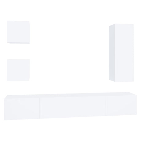 5 Piece TV Cabinet Set White Engineered Wood