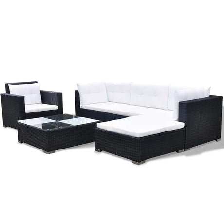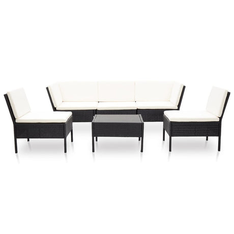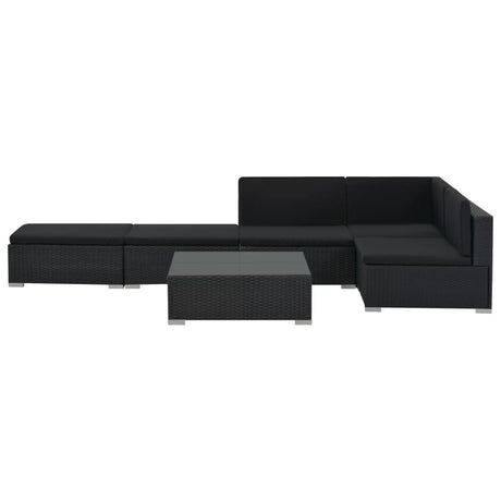 6 Piece Garden Lounge Set with Cushions Poly Rattan Black