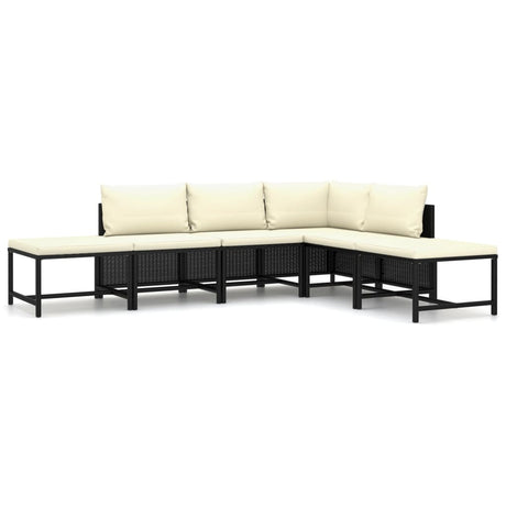 6 Piece Garden Lounge Set with Cushions Poly Rattan Black