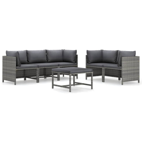 6 Piece Garden Lounge Set with Cushions Poly Rattan Grey