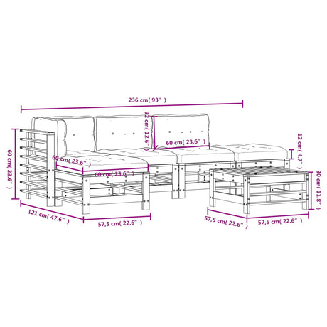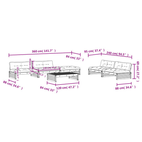 6 Piece Garden Lounge Set with Cushions Solid Pinewood