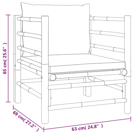 6 Piece Garden Lounge Set with Light Grey Cushions Bamboo
